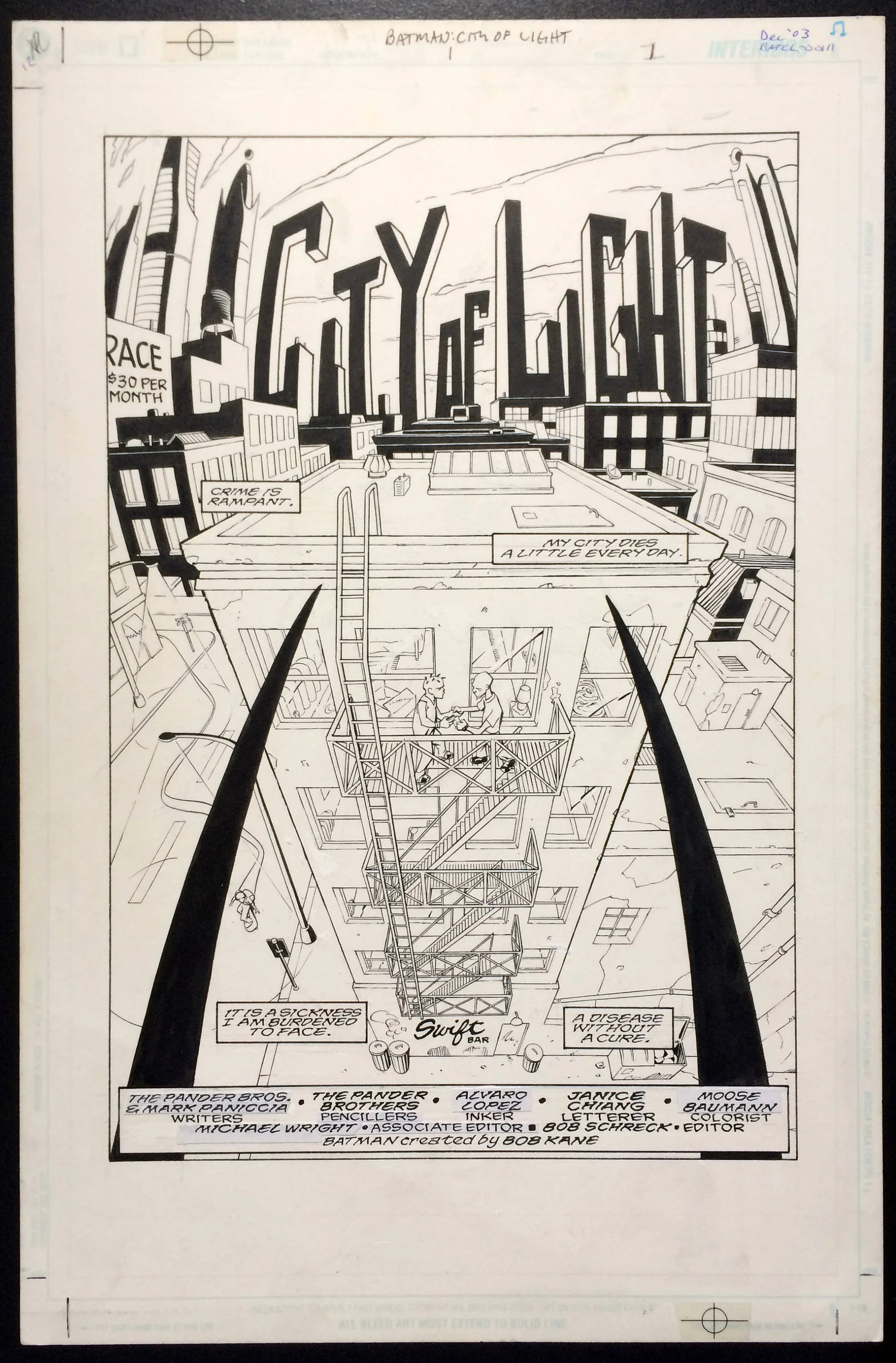 This is an original one of a kind comic book page illustrated by the Pander Brothers.